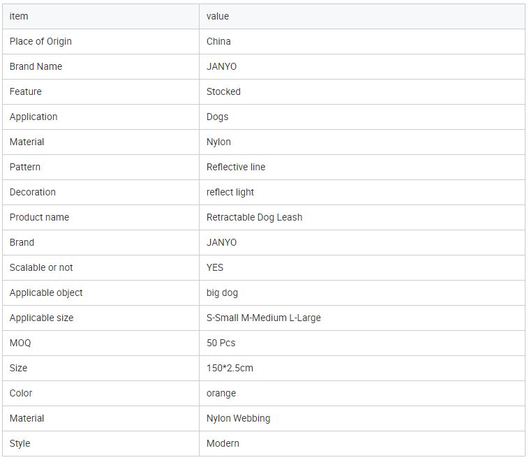 - إسم المنتج: سلسلة كلاب قابلة للسحب من النايلون بتصميم خط برتقالي عاكس مخصص للمصنع لكلاب السلالات الكبيرة